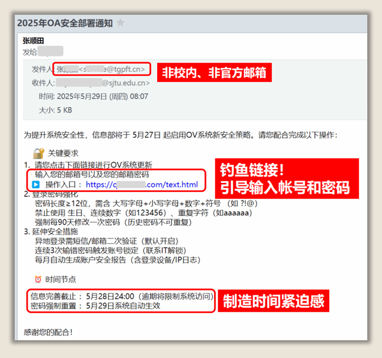 校园钓鱼邮件威胁持续升级,请全体师生务必对任何索要账号密码或资金操作的邮件保持高度警惕!